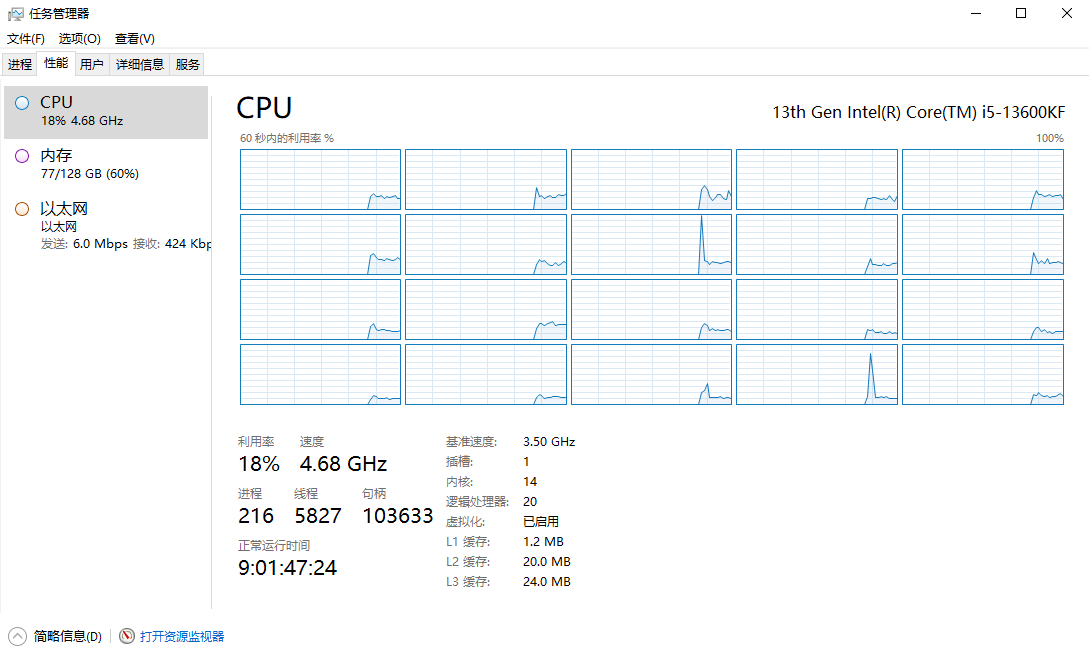 服务器使用 13600K 与 128GB 内存,